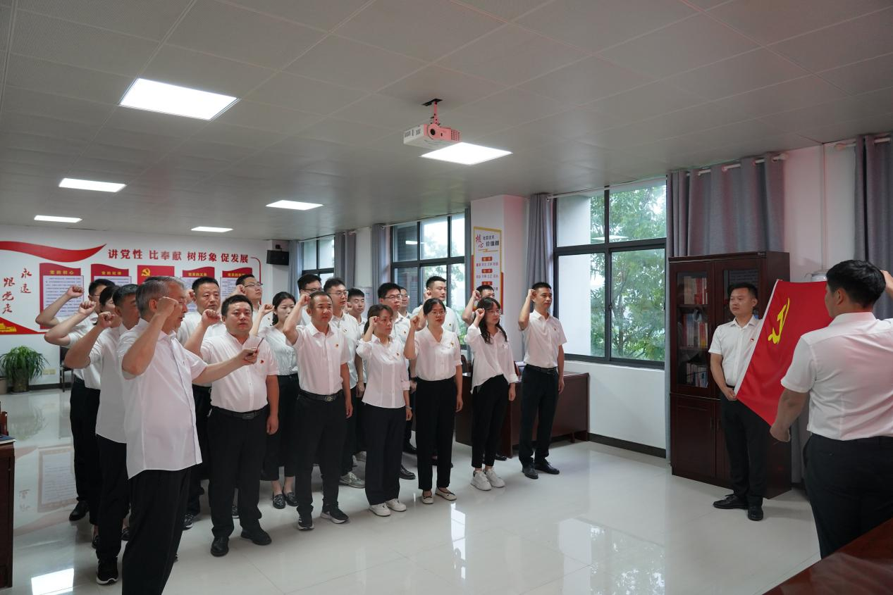 为深入学习贯彻习近平新时代中国特色社会主义思想和党的二十大精神,庆祝中国共产党成立102周年,6月29日,集团党委书记、董事长刘富修同志带领党员重温入党誓词。